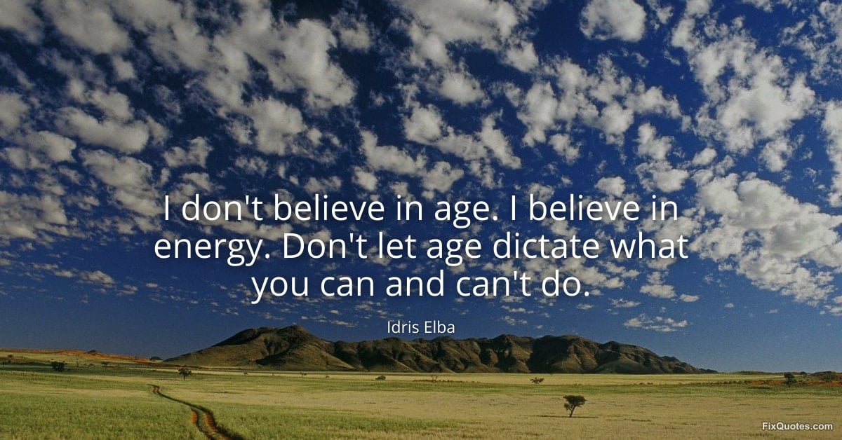 Elba, Idris. "I don't believe in age. I believe in energy. Don't let age dictate what you can and can't do." FixQuotes. February 16, 2026. https://fixquotes.com/quotes/i-dont-believe-in-age-i-believe-in-energy-dont-184434/.