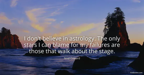 Coward, Noel. "I don't believe in astrology. The only stars I can blame for my failures are those that walk about the stage." FixQuotes. January 16, 2026. https://fixquotes.com/quotes/i-dont-believe-in-astrology-the-only-stars-i-can-114813/.