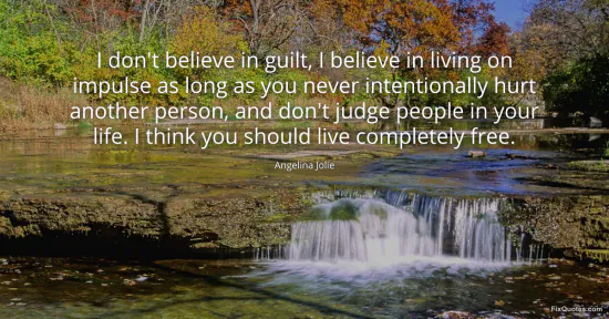 Jolie, Angelina. (2026, January 18). I don't believe in guilt, I believe in living on impulse as long as you never intentionally hurt another person, and don't judge people in your life. I think you should live completely free. FixQuotes. https://fixquotes.com/quotes/i-dont-believe-in-guilt-i-believe-in-living-on-13892/