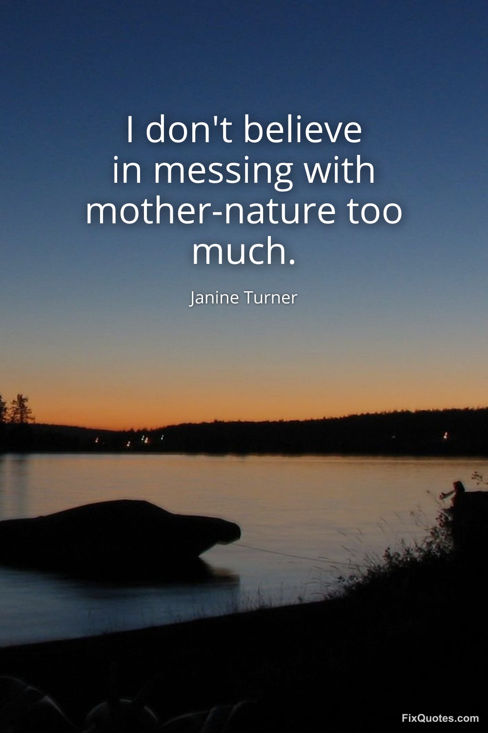 Turner, Janine. "I don't believe in messing with mother-nature too much." FixQuotes. January 17, 2026. https://fixquotes.com/quotes/i-dont-believe-in-messing-with-mother-nature-too-51747/.