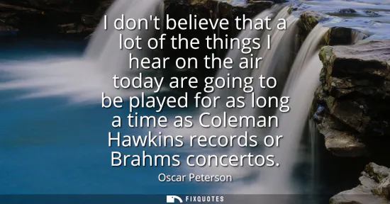 "I don't believe that a lot of the things I hear on the air today are going to be played for as long a time as Coleman Hawkins records or Brahms concertos"