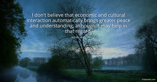 Kirby, William. (2026, January 15). I don't believe that economic and cultural interaction automatically brings greater peace and understanding, although it may help in that regard. FixQuotes. https://fixquotes.com/quotes/i-dont-believe-that-economic-and-cultural-152872/