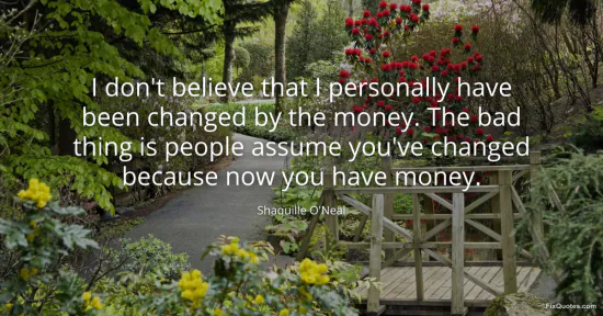 O'Neal, Shaquille. "I don't believe that I personally have been changed by the money. The bad thing is people assume you've changed because now you have money." FixQuotes. January 17, 2026. https://fixquotes.com/quotes/i-dont-believe-that-i-personally-have-been-81802/.