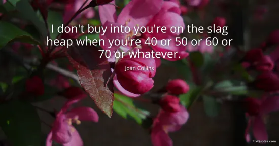Collins, Joan. (2026, January 16). I don't buy into you're on the slag heap when you're 40 or 50 or 60 or 70 or whatever. FixQuotes. https://fixquotes.com/quotes/i-dont-buy-into-youre-on-the-slag-heap-when-youre-83607/