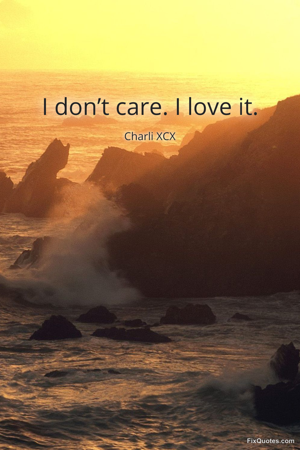 XCX, Charli. "I don’t care. I love it." FixQuotes. January 25, 2026. https://fixquotes.com/quotes/i-dont-care-i-love-it-184199/.