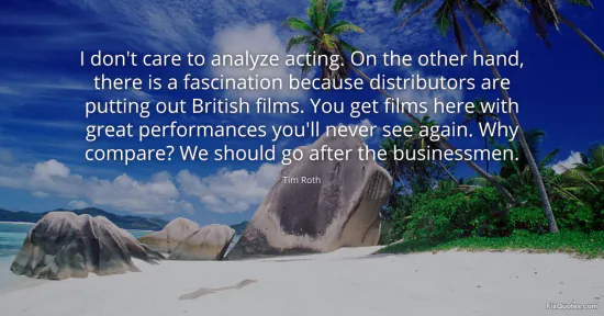 Roth, Tim. (2026, February 17). I don't care to analyze acting. On the other hand, there is a fascination because distributors are putting out British films. You get films here with great performances you'll never see again. Why compare? We should go after the businessmen. FixQuotes. https://fixquotes.com/quotes/i-dont-care-to-analyze-acting-on-the-other-hand-105490/