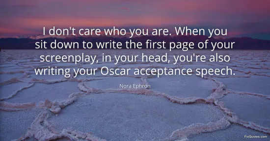 Ephron, Nora. "I don't care who you are. When you sit down to write the first page of your screenplay, in your head, you're also writing your Oscar acceptance speech." FixQuotes. January 16, 2026. https://fixquotes.com/quotes/i-dont-care-who-you-are-when-you-sit-down-to-100230/.