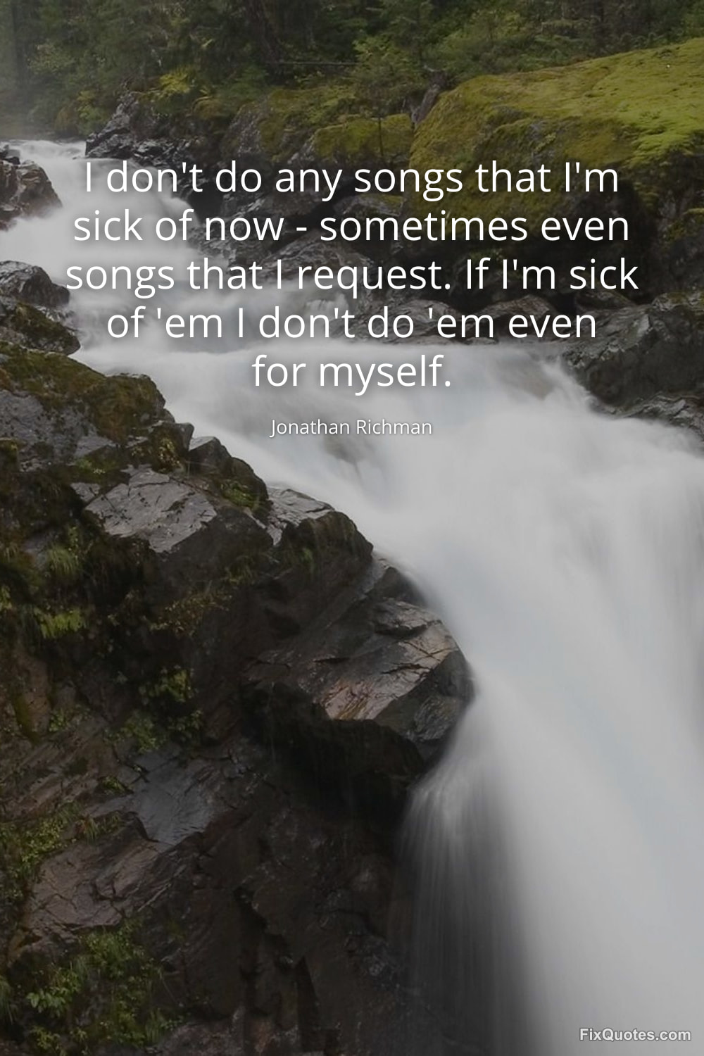Richman, Jonathan. (2026, January 16). I don't do any songs that I'm sick of now - sometimes even songs that I request. If I'm sick of 'em I don't do 'em even for myself. FixQuotes. https://fixquotes.com/quotes/i-dont-do-any-songs-that-im-sick-of-now-133314/