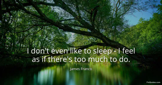 Franco, James. (2026, January 17). I don't even like to sleep - I feel as if there's too much to do. FixQuotes. https://fixquotes.com/quotes/i-dont-even-like-to-sleep-i-feel-as-if-theres-56216/