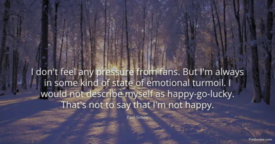 Simon, Paul. "I don't feel any pressure from fans. But I'm always in some kind of state of emotional turmoil. I would not describe myself as happy-go-lucky. That's not to say that I'm not happy." FixQuotes. January 16, 2026. https://fixquotes.com/quotes/i-dont-feel-any-pressure-from-fans-but-im-always-89071/.
