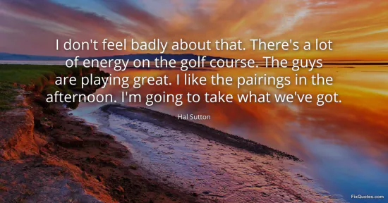 Sutton, Hal. "I don't feel badly about that. There's a lot of energy on the golf course. The guys are playing great. I like the pairings in the afternoon. I'm going to take what we've got." FixQuotes. January 17, 2026. https://fixquotes.com/quotes/i-dont-feel-badly-about-that-theres-a-lot-of-77247/.