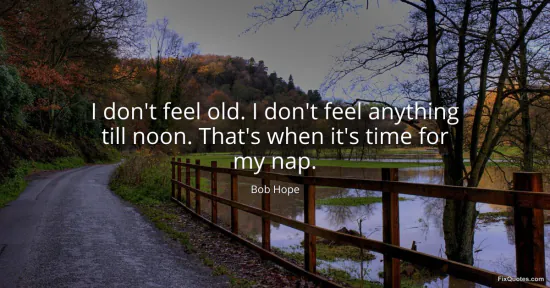 Hope, Bob. (2026, February 18). I don't feel old. I don't feel anything till noon. That's when it's time for my nap. FixQuotes. https://fixquotes.com/quotes/i-dont-feel-old-i-dont-feel-anything-till-noon-30252/