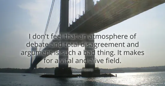 Geertz, Clifford. "I don't feel that an atmosphere of debate and total disagreement and argument is such a bad thing. It makes for a vital and alive field." FixQuotes. January 15, 2026. https://fixquotes.com/quotes/i-dont-feel-that-an-atmosphere-of-debate-and-145667/.