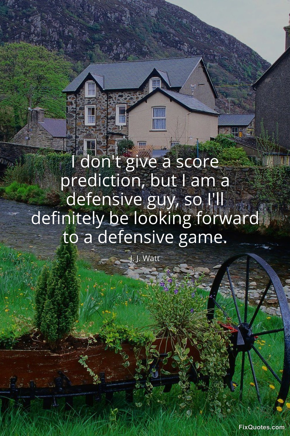 Watt, J. J. "I don't give a score prediction, but I am a defensive guy, so I'll definitely be looking forward to a defensive game." FixQuotes. January 11, 2026. https://fixquotes.com/quotes/i-dont-give-a-score-prediction-but-i-am-a-183866/.