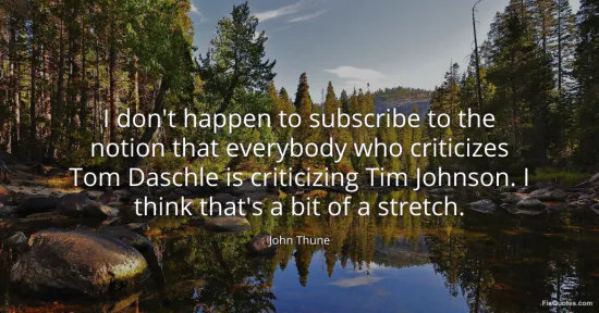 Thune, John. (2026, January 16). I don't happen to subscribe to the notion that everybody who criticizes Tom Daschle is criticizing Tim Johnson. I think that's a bit of a stretch. FixQuotes. https://fixquotes.com/quotes/i-dont-happen-to-subscribe-to-the-notion-that-98322/