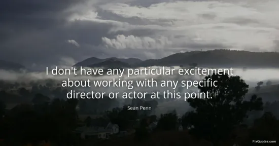 Penn, Sean. (2026, January 16). I don't have any particular excitement about working with any specific director or actor at this point. FixQuotes. https://fixquotes.com/quotes/i-dont-have-any-particular-excitement-about-93599/