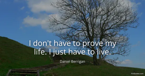 Berrigan, Daniel. (2026, January 15). I don't have to prove my life. I just have to live. FixQuotes. https://fixquotes.com/quotes/i-dont-have-to-prove-my-life-i-just-have-to-live-167258/