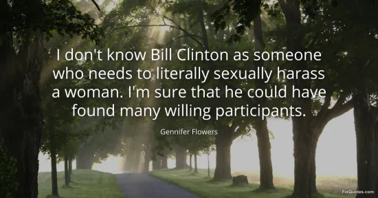 Flowers, Gennifer. (2026, January 17). I don't know Bill Clinton as someone who needs to literally sexually harass a woman. I'm sure that he could have found many willing participants. FixQuotes. https://fixquotes.com/quotes/i-dont-know-bill-clinton-as-someone-who-needs-to-59490/