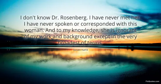 Hatfill, Steven. (2026, January 16). I don't know Dr. Rosenberg. I have never met her, I have never spoken or corresponded with this woman. And to my knowledge, she is ignorant of my work and background except in the very broadest of terms. FixQuotes. https://fixquotes.com/quotes/i-dont-know-dr-rosenberg-i-have-never-met-her-i-88299/