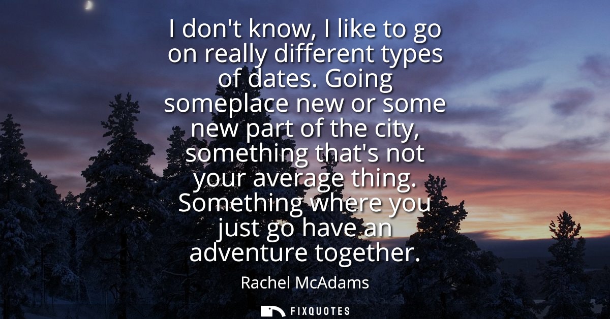 "I don't know, I like to go on really different types of dates. Going someplace new or some new part of the city, something that's not your average thing. Something where you just go have an adventure together"