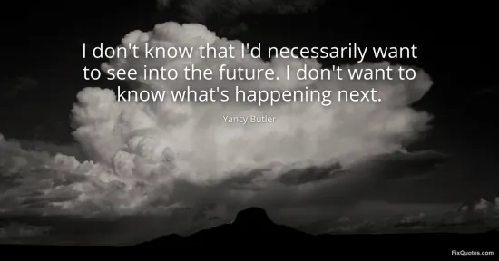 Butler, Yancy. "I don't know that I'd necessarily want to see into the future. I don't want to know what's happening next." FixQuotes. January 15, 2026. https://fixquotes.com/quotes/i-dont-know-that-id-necessarily-want-to-see-into-166027/.