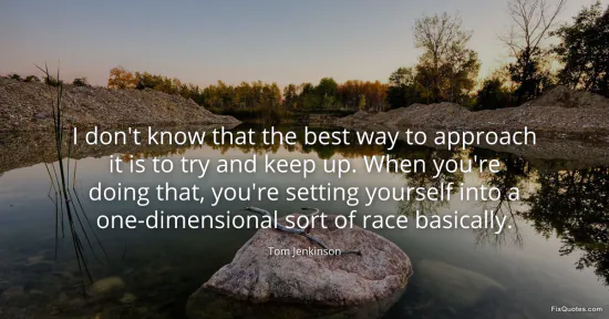Jenkinson, Tom. "I don't know that the best way to approach it is to try and keep up. When you're doing that, you're setting yourself into a one-dimensional sort of race basically." FixQuotes. January 16, 2026. https://fixquotes.com/quotes/i-dont-know-that-the-best-way-to-approach-it-is-134823/.