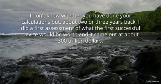 Fleischmann, Martin. "I don't know whether you have done your calculations but, about two or three years back, I did a first assessment of what the first successful device would be worth and it came out at about 300 trillion dollars." FixQuotes. January 18, 2026. https://fixquotes.com/quotes/i-dont-know-whether-you-have-done-your-5579/.