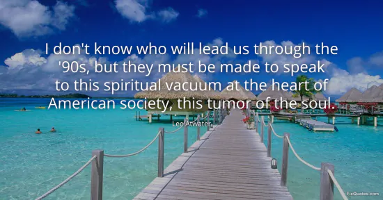Atwater, Lee. "I don't know who will lead us through the '90s, but they must be made to speak to this spiritual vacuum at the heart of American society, this tumor of the soul." FixQuotes. January 16, 2026. https://fixquotes.com/quotes/i-dont-know-who-will-lead-us-through-the-90s-but-133139/.
