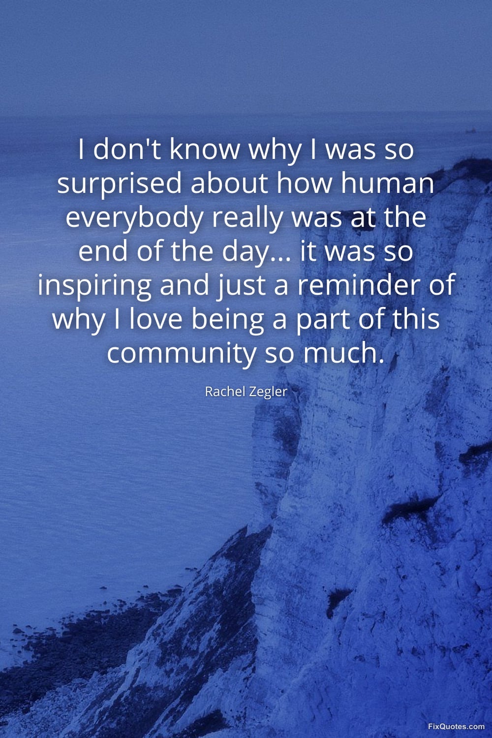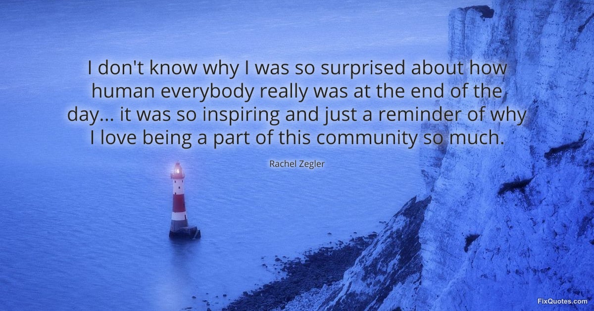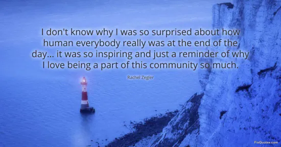 Zegler, Rachel. (2026, March 18). I don't know why I was so surprised about how human everybody really was at the end of the day... it was so inspiring and just a reminder of why I love being a part of this community so much. FixQuotes. https://fixquotes.com/quotes/i-dont-know-why-i-was-so-surprised-about-how-186148/