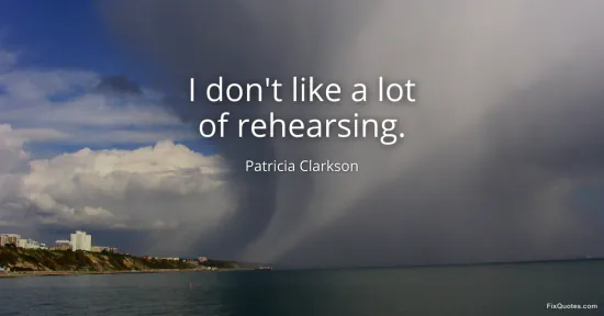 Clarkson, Patricia. (2026, January 15). I don't like a lot of rehearsing. FixQuotes. https://fixquotes.com/quotes/i-dont-like-a-lot-of-rehearsing-164365/