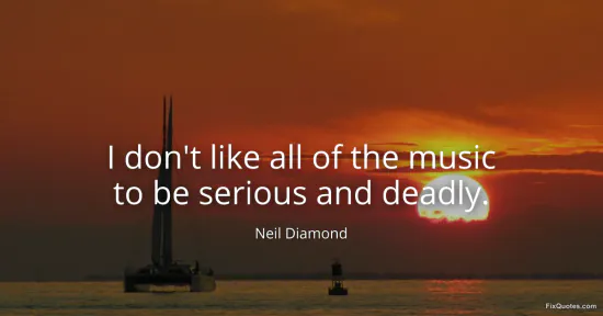 Diamond, Neil. (2026, January 16). I don't like all of the music to be serious and deadly. FixQuotes. https://fixquotes.com/quotes/i-dont-like-all-of-the-music-to-be-serious-and-94041/