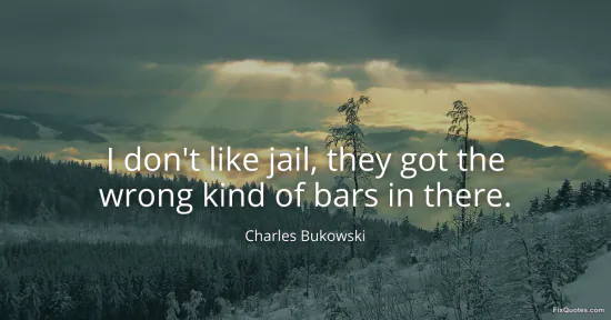 Bukowski, Charles. (2026, February 8). I don't like jail, they got the wrong kind of bars in there. FixQuotes. https://fixquotes.com/quotes/i-dont-like-jail-they-got-the-wrong-kind-of-bars-118199/