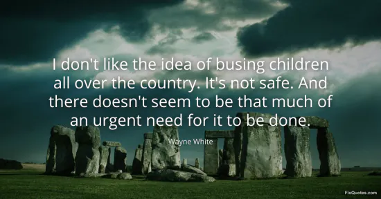 White, Wayne. (2026, January 17). I don't like the idea of busing children all over the country. It's not safe. And there doesn't seem to be that much of an urgent need for it to be done. FixQuotes. https://fixquotes.com/quotes/i-dont-like-the-idea-of-busing-children-all-over-63906/