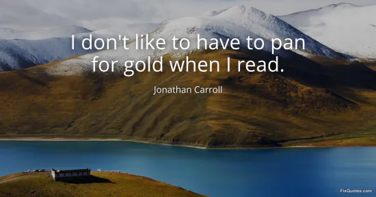 Carroll, Jonathan. (2026, January 15). I don't like to have to pan for gold when I read. FixQuotes. https://fixquotes.com/quotes/i-dont-like-to-have-to-pan-for-gold-when-i-read-167850/