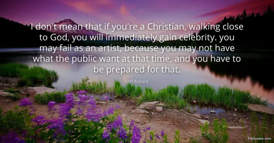 Richard, Cliff. (2026, January 17). I don't mean that if you're a Christian, walking close to God, you will immediately gain celebrity. you may fail as an artist, because you may not have what the public want at that time, and you have to be prepared for that. FixQuotes. https://fixquotes.com/quotes/i-dont-mean-that-if-youre-a-christian-walking-54452/