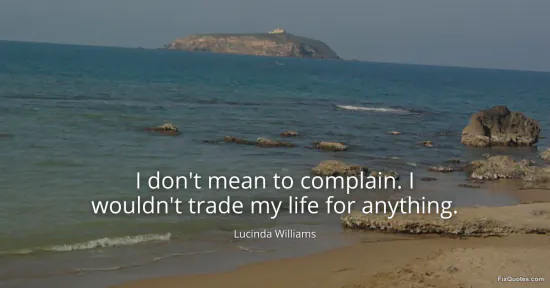 Williams, Lucinda. (2026, January 16). I don't mean to complain. I wouldn't trade my life for anything. FixQuotes. https://fixquotes.com/quotes/i-dont-mean-to-complain-i-wouldnt-trade-my-life-96438/
