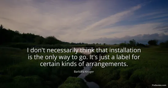 Kruger, Barbara. "I don't necessarily think that installation is the only way to go. It's just a label for certain kinds of arrangements." FixQuotes. January 17, 2026. https://fixquotes.com/quotes/i-dont-necessarily-think-that-installation-is-the-42734/.