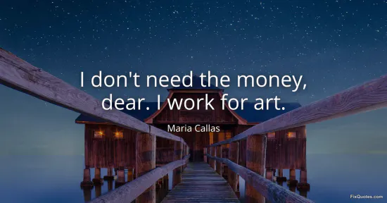 Callas’s line lands like a jeweled slap because it weaponizes politeness. “Dear” isn’t warmth; it’s a velvet rope. In one breath she shrugs off the most common lever used on performers - money - and replaces it with the only currency she’s willing to be judged by: art. The phrasing is pointedly simple, almost conversational, which makes the assertion feel less like a manifesto and more like a boundary being calmly enforced.