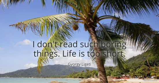 Ligeti, Gyorgy. (2026, January 15). I don't read such boring things. Life is too short. FixQuotes. https://fixquotes.com/quotes/i-dont-read-such-boring-things-life-is-too-short-158369/