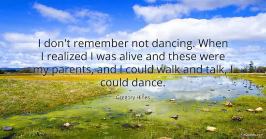 Memory isn’t just recollection here; it’s muscle memory turned into identity. Gregory Hines frames dance not as a skill he acquired, but as a condition he woke up with the way you wake up with a name. “I don’t remember not dancing” is a swaggering little paradox: he’s claiming something older than conscious thought, placing tap in the same category as breathing. It’s also a quiet flex, the kind performers use to make genius sound inevitable rather than practiced.