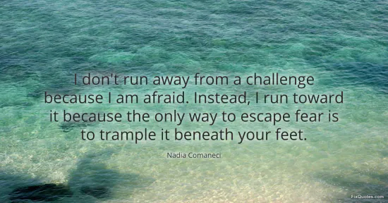 Comaneci, Nadia. "I don't run away from a challenge because I am afraid. Instead, I run toward it because the only way to escape fear is to trample it beneath your feet." FixQuotes. January 15, 2026. https://fixquotes.com/quotes/i-dont-run-away-from-a-challenge-because-i-am-82710/.