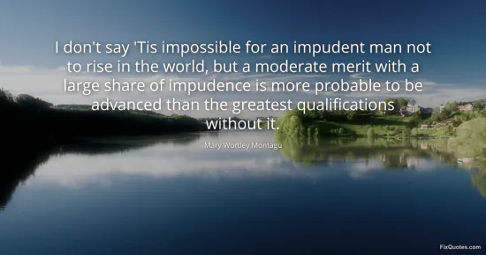 Montagu, Mary Wortley. "I don't say 'Tis impossible for an impudent man not to rise in the world, but a moderate merit with a large share of impudence is more probable to be advanced than the greatest qualifications without it." FixQuotes. January 16, 2026. https://fixquotes.com/quotes/i-dont-say-tis-impossible-for-an-impudent-man-not-99734/.