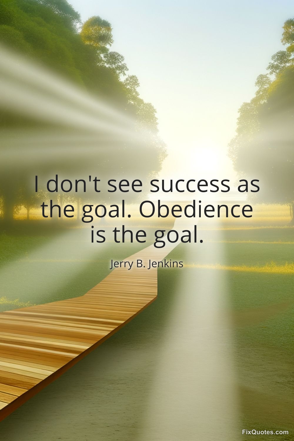 Jenkins, Jerry B. "I don't see success as the goal. Obedience is the goal." FixQuotes. January 11, 2026. https://fixquotes.com/quotes/i-dont-see-success-as-the-goal-obedience-is-the-100549/.