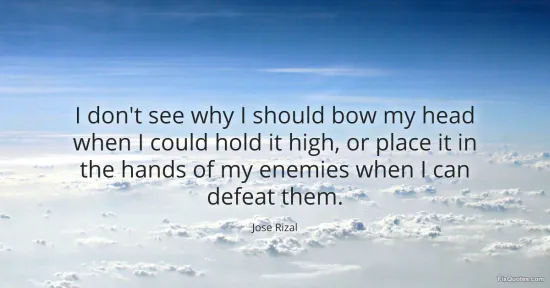 Rizal, Jose. (2026, February 10). I don't see why I should bow my head when I could hold it high, or place it in the hands of my enemies when I can defeat them. FixQuotes. https://fixquotes.com/quotes/i-dont-see-why-i-should-bow-my-head-when-i-could-185076/