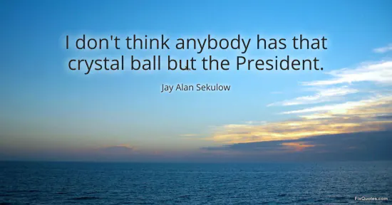 Sekulow, Jay Alan. (2026, February 19). I don't think anybody has that crystal ball but the President. FixQuotes. https://fixquotes.com/quotes/i-dont-think-anybody-has-that-crystal-ball-but-46808/