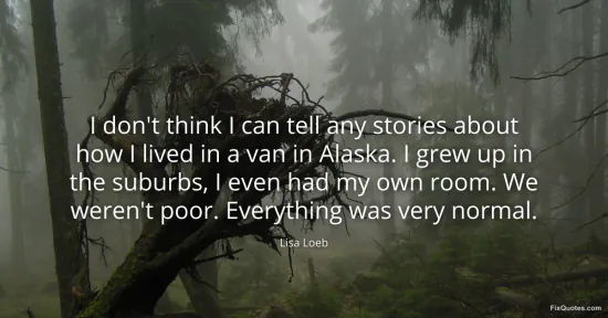 Loeb, Lisa. (2026, January 16). I don't think I can tell any stories about how I lived in a van in Alaska. I grew up in the suburbs, I even had my own room. We weren't poor. Everything was very normal. FixQuotes. https://fixquotes.com/quotes/i-dont-think-i-can-tell-any-stories-about-how-i-110967/