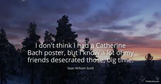 Scott, Sean William. (2026, January 15). I don't think I had a Catherine Bach poster, but I know a lot of my friends desecrated those, big time. FixQuotes. https://fixquotes.com/quotes/i-dont-think-i-had-a-catherine-bach-poster-but-i-157271/
