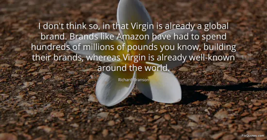 Branson, Richard. "I don't think so, in that Virgin is already a global brand. Brands like Amazon have had to spend hundreds of millions of pounds you know, building their brands, whereas Virgin is already well-known around the world." FixQuotes. January 18, 2026. https://fixquotes.com/quotes/i-dont-think-so-in-that-virgin-is-already-a-1358/.