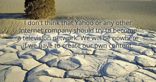 Semel, Terry. "I don't think that Yahoo or any other Internet company should try to become a television network. We will be nowhere if we have to create our own content." FixQuotes. January 16, 2026. https://fixquotes.com/quotes/i-dont-think-that-yahoo-or-any-other-internet-112896/.
