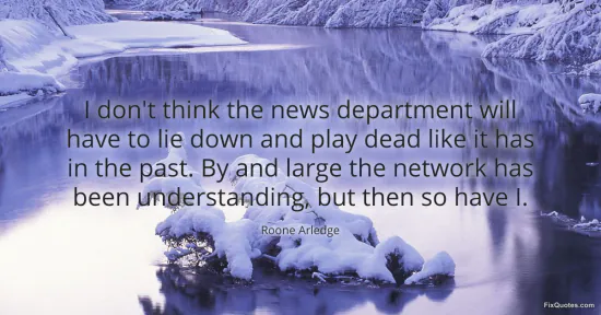 "I don't think the news department will have to lie down and play dead like it has in the past. By and large the network has been understanding, but then so have I." FixQuotes, 16 Jan. 2026, https://fixquotes.com/quotes/i-dont-think-the-news-department-will-have-to-lie-102823/. Accessed 13 Feb. 2026.